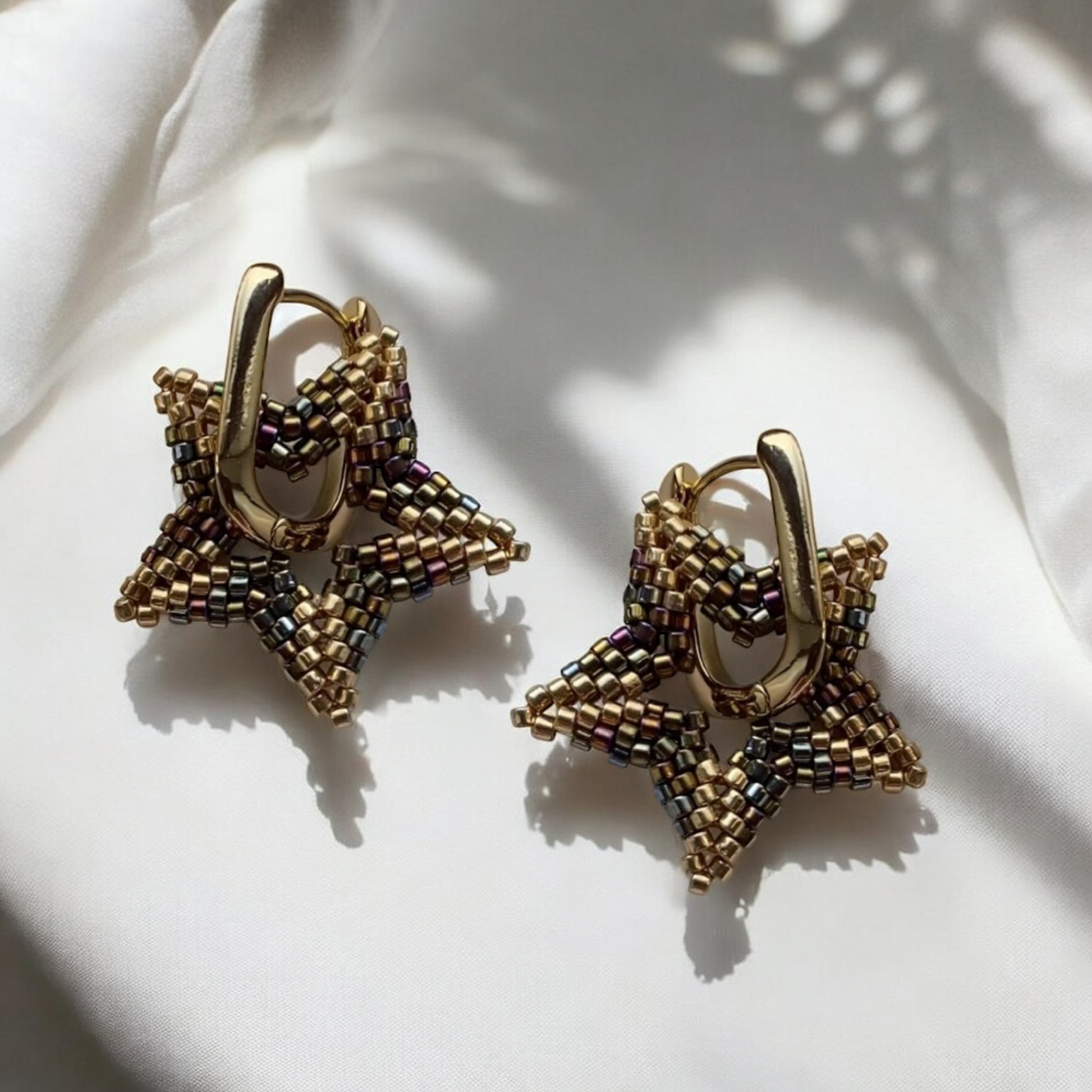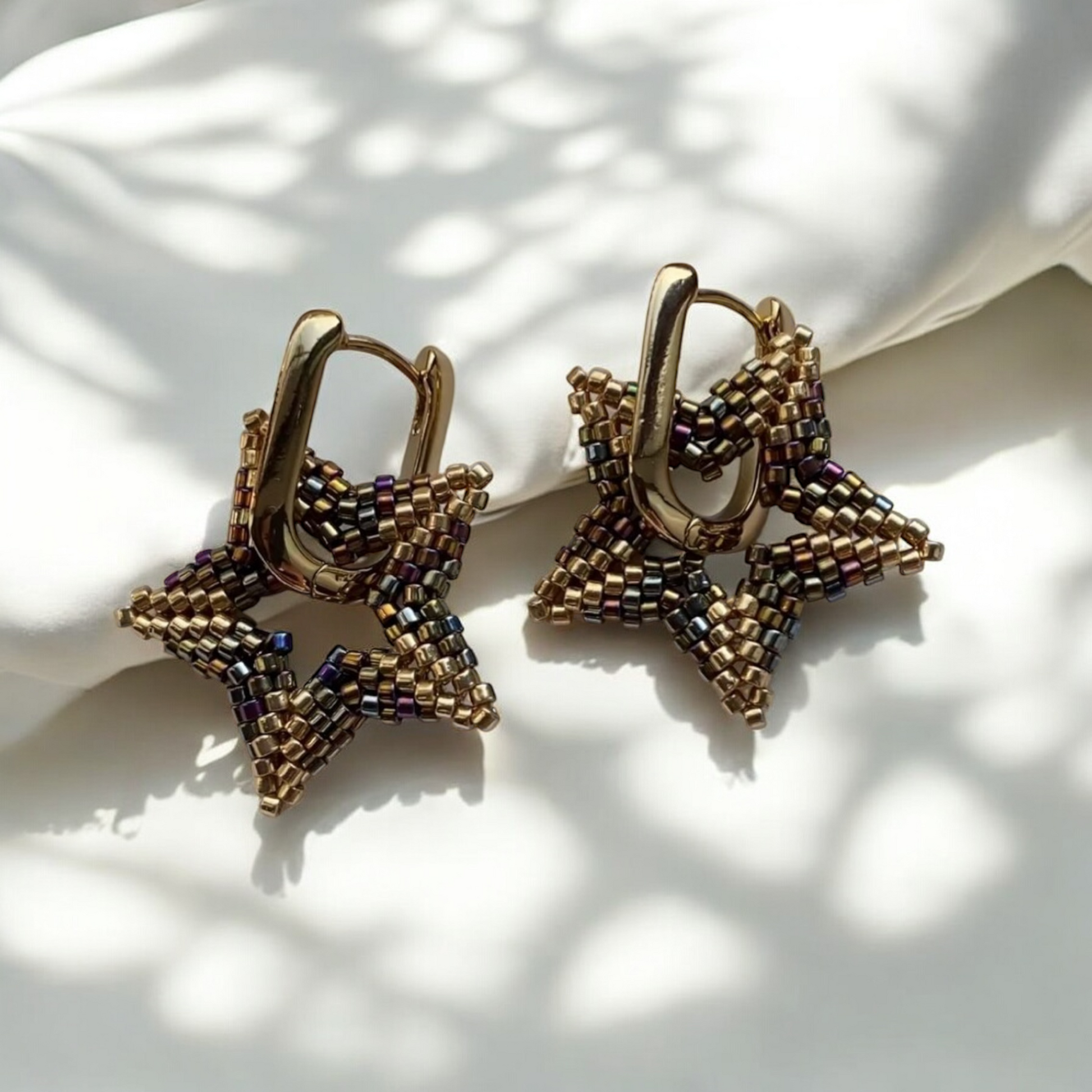 Az arany gyöngyök és a finoman csillanó árnyalatok a végtelen univerzumot idézik, ahol minden apró részletnek helye és célja van.