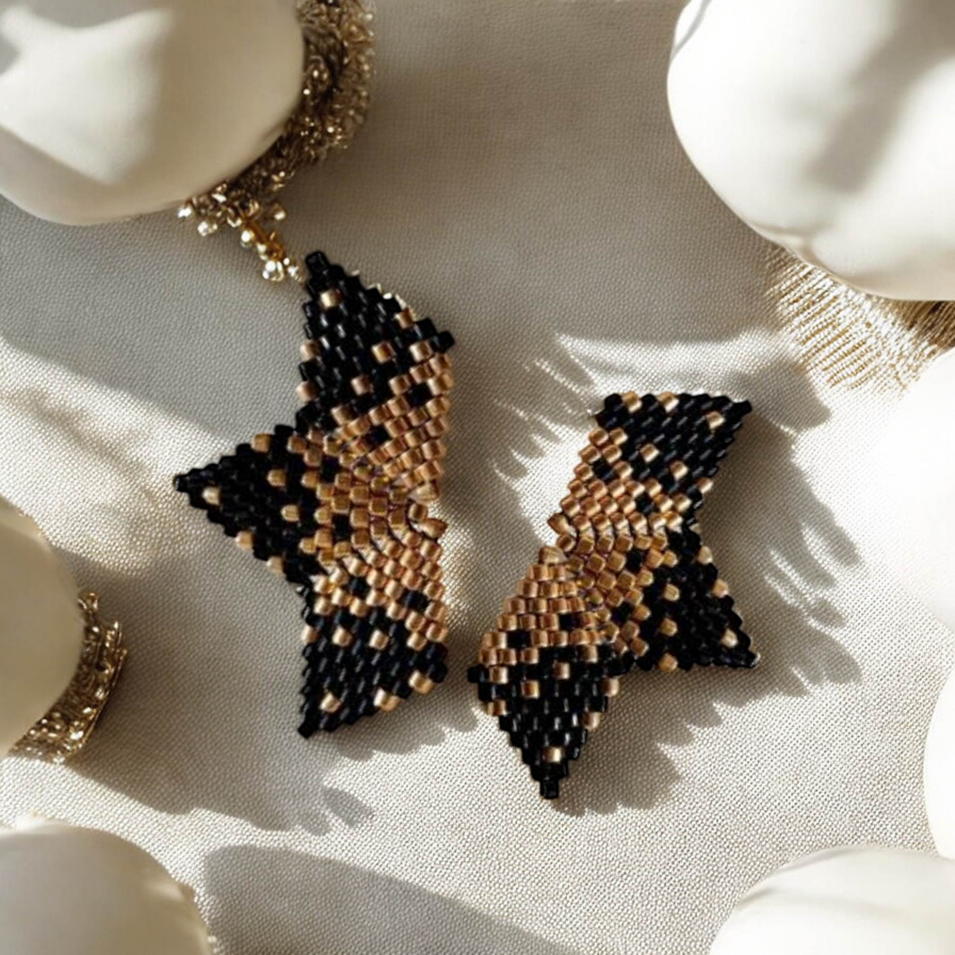 Ahogy a pillangó is a sötétből bontja ki szárnyait, ez a kézzel fűzött fülbevaló is a transzformáció erejét hordozza magában.